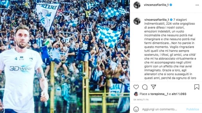«7 stagioni indimenticabili, 224 volte orgoglioso di avere difeso i nostri colori, emozioni indelebili, un vuoto incolmabile che nessuno potrà mai rimarginare e che nessuno potrà mai farmi dimenticare...Non ho parole in questo momento. Voglio ringraziare tutti quelli che mi hanno sempre sostenuto, i tifosi, gli amici, una città’ che mi ha abbracciato virtualmente e che mi accompagnato negli ultimi giorni con un affetto che mai avrei immaginato. Grazie a loro, agli allenatori che si sono susseguiti in questi anni, perché da ognuno di loro ho imparato qualcosa.
