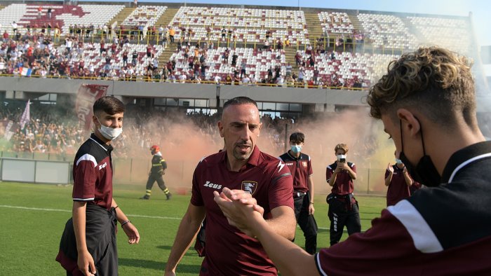Franck Ribery non vedeva l'ora di poter tornare a lavorare con la squadra. Dopo essersi allenato in solitaria durante i mesi trascorsi da svincolato, questo pomeriggio ha mosso i primi passi sul prato del Mary Rosy. In precedenza aveva fatto tappa al Check up per le consuete visite mediche. Il francese è apparso in buona condizione ma, naturalmente avrà bisogno di un po' di tempo per ritrovare il ritmo partita. A Fabrizio Castori ed al suo staff spetterà il compito di gestirlo per consentirgli di trovare, gradualmente, la miglior condizione. L'ingaggio del francese, con ogni probabilità, renderà necessaria qualche variante tattica: in futuro Ribery potrebbe agire da trequartista, alle spalle di un attacco formato da Simy e Bonazzoli. L'ex Fiorentina, infatti, potrebbe garantire linfa vitale per le due punte che, specie in occasione del match contro la Roma, sono apparse in difficoltà. L'esperimento era stato provato da Castori ancor prima che Ribery arrivasse a Salerno. Già domenica mattina, nel test amichevole disputato, il tecnico ha utilizzato il trequartista per tutto il secondo tempo. A Torino, però, la Salernitana potrebbe proseguire sulla strada della continuità: Ribery, infatti, difficilmente avrà spazio dal 1' ma inizierà a respirare il clima dello spogliatoio e potrebbe anche avere un po' di minutaggio a partita in corso. È in crescita, invece, la condizione di Simy che, pur non avendo svolto partite in ritiro, adesso ha una settimana di lavoro in più nella gambe e contro i granata potrebbe partire titolare in coppia con Bonazzoli.