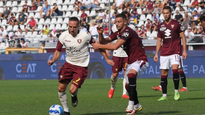 SALERNITANA (3-4-1-2): Belec; Gyomber, Strandberg, Gagliolo; Kechrida, M.Coulibaly, Di Tacchio, Ranieri; Ribery; Djuric, Bonazzoli. A disposizione: Fiorillo, Russo, Bogdan, Jaroszynski, Delli Carri, Obi, L. Coulibaly, Schiavone, Kastanos, Zortea, Simy, Gondo. Allenatore: Castori.