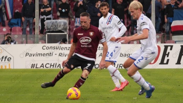 Franck Ribery non figura nella lista dei convocati diramata dalla Salernitana per la trasferta di Cagliari. Il francese non sarà a disposizione di Stefano Colantuono per la gara di domani sera contro i sardi nel match salvezza dell'Unipol Domus. Ribery non si era allenato nella giornata di ieri a causa di una gastroenterite e stava gestendo un fastidio al ginocchio. Rientra Frederic Veseli, ma non ci sarà Stefan Strandberg.