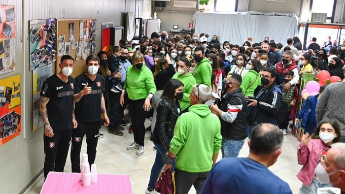 I risultati conquistati sul campo e l'ultimo posto in classifica non hanno affievolito l'entusiasmo dei tifosi della Salernitana. Passione testimoniata non soltanto con presenze da record in trasferta ma anche con la vicinanza ai propri beniamini fuori dal rettangolo verde. Tanti giovani tifosi, infatti, hanno “abbracciato” Simone Verdi e Pasquale Mazzocchi che, accompagnati dal team manager Salvatore Avallone, hanno fatto visita al centro polifunzionale per ragazzi “Chiara Della Calce”, nella frazione di Ogliara. «Noi Salernitana - ha sottolineato il dirigente del cavalluccio marino -. siamo sempre presenti e partecipiamo con entusiasmo a tutte quelle che possono essere le iniziative sociali».