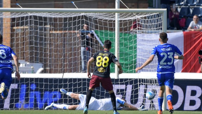 EMPOLI (4-3-1-2): Vicario 7.5; Stojanovic 6.5, Romagnoli 6, Luperto 6.5, Parisi 6.5 (32' st Cacace 6); Zurkowski 6 (28' st Benassi 6), Asllani 6.5, Bandinelli 6 (28' st Henderson 5.5); Verre 6 (32' st La Mantia 6); Pinamonti 6, Cutrone 6.5 (12' st Bajrami 6). Allenatore: Andreazzoli 6.5.