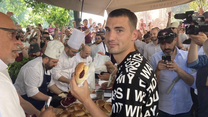 Ogni promessa è debito. Lo sa bene Federico Bonazzoli che, dopo aver conquistato la salvezza con la maglia della Salernitana, ha tenuto fede a quanto aveva promesso in un'intervista rilasciata a DAZN. «Se ci salviamo, offrirò una brioche con il gelato a tutti i tifosi», aveva detto il capocannoniere del cavalluccio marino che oggi pomeriggio ha deciso di tenere fede a quanto detto. Ad accoglierlo nella piazzetta della chiesa di San Pietro in Camerellis circa 500 tifosi che hanno osannato il numero 9 granata. «Ho mantenuto la promessa», ha ribadito il calciatore che ha firmato autografi e concesso foto ricordo a tantissimi giovani tifosi della Salernitana, letteralmente impazziti di gioia per la conquista della permanenza in massima serie.