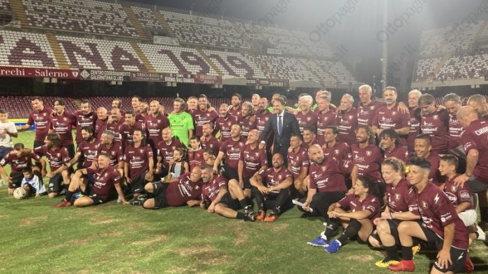 Un fenomeno sociale che va ben oltre la semplice ricorrenza e che, tra sabato e domenica, si è (ri)materializzato tra le strade della città. Dopo gli eventi organizzati nel vecchio stadio Vestuti, questa sera la festa si è spostata all’Arechi dove, dinanzi a circa 9mila tifosi, è andata in scena la sfida benefica tra le vecchie glorie della Salernitana e la Nazionale Italiana Cantanti.