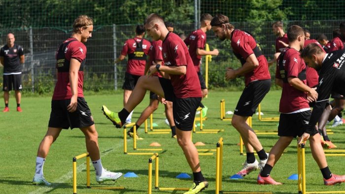 Sono ripresi questo pomeriggio presso il C.S. “Mary Rosy” gli allenamenti della Salernitana. Gli uomini di Davide Nicola hanno aperto la seduta con una fase di attivazione atletica seguita da esercitazioni tattiche. L’allenamento è terminato con una partitella finale.