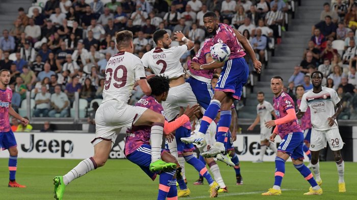 JUVENTUS (4-4-2): Perin 6; De Sciglio 5.5 (18' st Alex Sandro 6), Bonucci 6.5, Bremer 6.5, Cuadrado 5; McKennie 5 (39' st Soulé 5), Paredes 5, Miretti 6 (18' st Fagioli 6), Kostic 7 (33' st Danilo 6); Kean 4.5 (1' st Milik 6), Vlahovic 6. A disposizione: Pinsoglio, Garofani, Gatti, Rugani, Iling-Junior. Allenatore: Allegri 6.