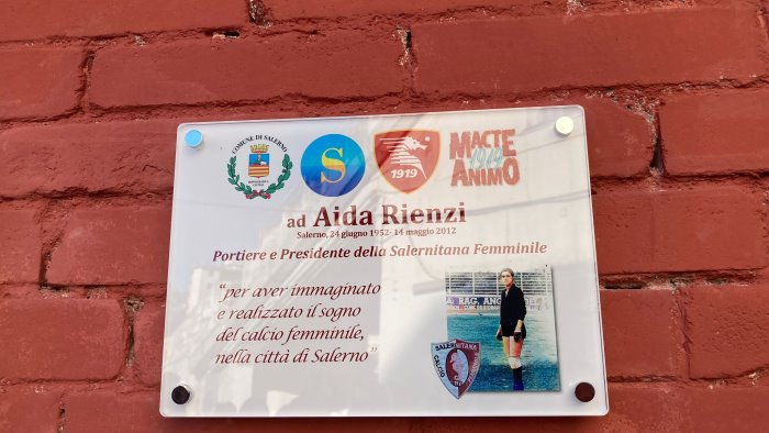 Da oggi anche il nome di Aida Rienzi è scolpito sul muro dei ricordi dello stadio Donato Vestuti di Salerno. Il Comune, insieme alle associazioni "Salernitani doc" e Macte Animo, ha affisso una targa in ricordo della storica figura della Salernitana Femminile, squadra di cui Rienzi è stata prima portiere e poi presidentessa.