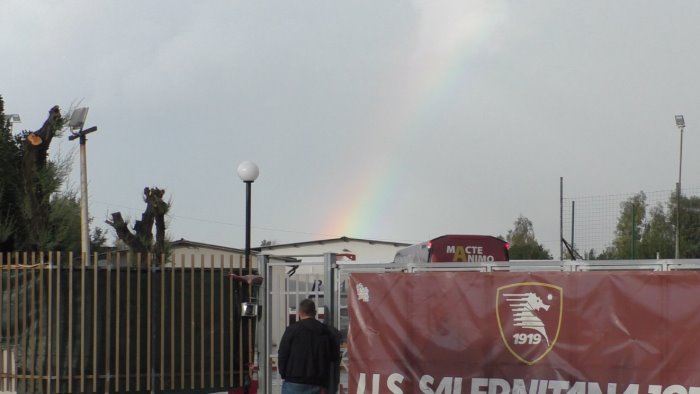 Erano da poco trascorse le 15 quando sul “Mary Rosy”, quartier generale della Salernitana, è spuntato uno spettacolare arcobaleno. Un fenomeno che, nei fatti, ha segnato la fine del temporale e che, idealmente, potrebbe aver scacciato le nubi che da ieri pomeriggio aleggiavano sul club granata e sul suo allenatore.