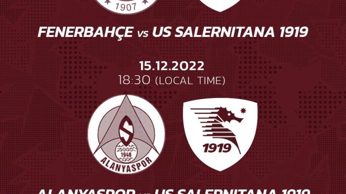 In una nota stampa rilasciata dalla società di Via Allende si legge che "l’U.S. Salernitana 1919, in partnership con Match Pr Spor, è lieta di comunicare nel corso del ritiro a Belek (Antalya) dall’8 al 15 dicembre i granata affronteranno in amichevole il 10 dicembre il Fenerbahce e il 15 dicembre l'Alanyaspor. Entrambe le amichevoli si svolgeranno presso l'Alanya Oba Stadium". La partita più interessante sarà sicuramente quella con il Fenerbahce, una delle più importanti compagini della massima divisione turca e frequentatrice abituale dei massimi palcoscenici continentali. Il Fenerbache guida attualmente la Superlig turca con 29 punti, frutto di 9 vittorie, 2 pareggi e 2 sconfitte. L'Alanyaspor, invece, è al nono posto del campionato, con 17 punti totalizzati in 13 giornate.