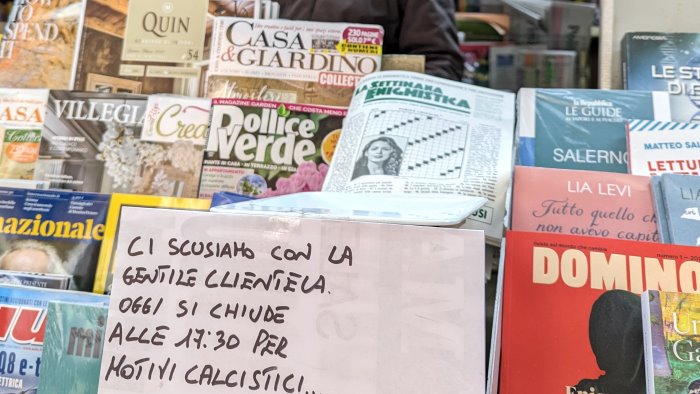 "Ci scusiamo con la gentile clientela, oggi si chiude alle 17:30 per motivi calcistici..." il messaggio in bella vista piazzato dal titolare. Un avvertimento che è anche la metafora di un'intera città. Salerno si chiude in casa, o andrà allo stadio, per curare la sua febbre. La febbre da derby.