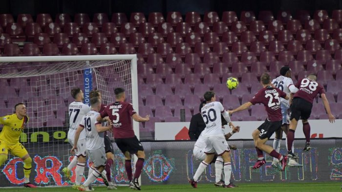 19' - GOL SALERNITANA - Sugli sviluppi del calcio d'angolo passa la squadra di Sousa: Daniliuc raccoglie una respinta della difesa rossoblu, palla a Dia che calcia di prima intenzione alle spalle di Skorupski.