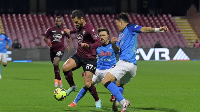 È il giorno dei giorni. L'IItalia - e non solo - si ferma per Napoli-Salernitana, sfida che può regalare lo scudetto agli azzurri a 33 anni di distanza dall'ultimo trionfo. Molto dipenderà dal risultato di Inter-Lazio, in programma alle 12.30. Ma molto altro anche dai granata, per nulla intenzionati a ricoprire il ruolo di vittima sacrificale. Paulo Sousa alla vigilia è stato chiaro: il cavalluccio marino non rinuncerà alle sue caratteristiche e proverà a rispondere colpo su colpo alle giocate della capolista. Diverse le novità di formazione nell'undici titolare granata: Daniliuc tornerà titolare in difesa al posto di Lovato; in mediana chance dal 1' per Nicolussi Caviglia (preferito a Vilhena) accanto a Coulibaly; Kastanos sarà confermato sull'out di destra con Maggiore che aggirà da trequartista accanto a Candreva e alle spalle di Dia.