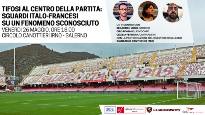 Si svolgerà il prossimo venerdì 26 maggio alle ore 18 al Circolo dei Canottieri Irno di Salerno un incontro inedito sul fenomeno della tifoseria tra Francia e Italia organizzato con l’U.S. Salernitana 1919 e l’Alliance Française di Salerno, nato su iniziativa dell’Institut Français Italia.