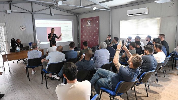 Giornata "didattica" per la Salernitana che nel pomeriggio ha ospitato gli allenatori del corso Uefa Pro. I corsisti, accompagnati da Renzo Ulivieri, presidente dell'Associazione Italiana Allenatori Calcio, hanno seguito la seduta di allenamento diretta da Paulo Sousa sul prato del Mary Rosy. La giornata salernitana è, poi, proseguita con un incontro didattico tenuto dall'allenatore portoghese nella sala conferenze del centro sportivo Mary Rosy. Nei mesi scorsi era stato il Monza ad ospitare gli allievi del master. Oggi è toccato alla Salernitana che, anche da questo punto di vista, si candida a diventare una società-modello.