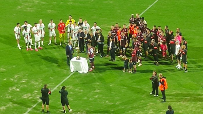 Il presidente ha voluto salutare la moglie del compianto fratello, che è sempre stata presente e a sostegno dell'iniziativa. Poi, le parole per i tifosi. "La vostra presenza è fondamentale. Voi siete il valore aggiunto della Salernitana. Le parole lasciamole agli altri. I nostri ragazzi oggi sono stati grandi. Un grazie anche al mister Sousa, a De Sanctis", e chiude: "Macte Animo".