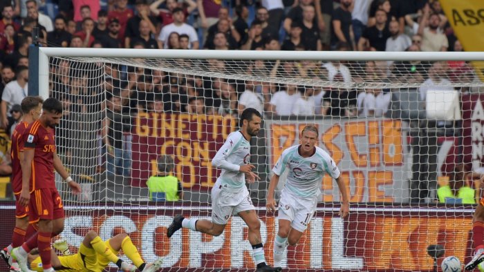 La Salernitana inizia con un pari d'oro il suo cammino stagionale. All'Olimpico contro la Roma i granata strappano un preziosissimo 2-2, al termine di una partita combattuta e di grande sacrificio per gli uomini di Sousa. L'avvio, infatti, è tutto in salita. Belotti dopo 8' trova il vantaggio ma la rete viene annullata per un fuorigioco millimetrico. Passano nove minuti ed il "Gallo" si sblocca, saltando Gyomber e depositando la sfera alle spalle di Ochoa. La Salernitana è in affanno, Botheim non riesce a reggere da solo il peso dell'attacco e le occasioni latitano. Ci pensa, però, Candreva al 36' a rimettere il match in parità: il trequartista granata, lanciato a rete da Fazio, sfrutta un velo di Coulibaly e batte Rui Patricio dopo aver saltato Smalling. Il pari tarpa le ali ai giallorossi che calano vistosamente. E ad inizio ripresa la Salernitana ne approfitta: Bradaric dalla sinistra crossa per Candreva che addomestica il pallone e fa partire un tiro a giro che non lascia scampo al portiere giallorosso. L'Olimpico granata esplode. Mourinho si gioca subito quattro sostituzioni, Sousa risponde inserendo Dia. La Salernitana prova a contenere ma non può nulla a nove dalla fine quando Belotti svetta più in alto di tutti e di testa pareggia.