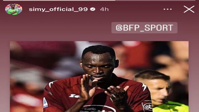 Dopo aver ottenuto il reintegro in gruppo, Simy proverà a convincere Sousa e la Salernitana a concedergli una nuova chance. In attesa di riuscire a dimostrare il suo valore in campo, il nigeriano ieri ha lanciato un messaggio all’ambiente attraverso i social: l’attaccante ha postato una foto che lo ritrae in maglia granata. Nell’immagine, inoltre, l’ex calciatore del Crotone è intento ad applaudire. Uno scatto che risale a due stagioni fa e che potrebbe prestarsi a numerose interpretazioni. Le risposte reali, però, potranno arrivare soltanto dal rettangolo verde. Per il momento Simy si allenerà con il resto della squadra ma non potrà essere convocato perché non figura nella lista consegnata in Lega dalla società. Avendo la Salernitana ancora un posto libero, però, l’elenco potrà essere modificato e integrato in qualsiasi momento. La società non esclude alcuna ipotesi e attende di vedere all’opera il calciatore che dovrà riuscire a cancellare due stagioni da dimenticare per convincere Sousa a dargli un’opportunità. Simy, tra l’altro, in questi mesi si è allenato da solo e, quindi, dovrà lavorare sodo per provare a recuperare la miglior condizione atletica.