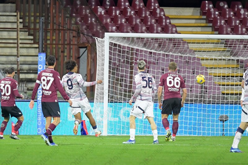 20' - GOL SALERNITANA - Errore clamoroso di Lovato che sbaglia il retropassaggio e lancia a rete Zirkzee, l'olandese salta Costil in uscita e a porta vuota deposita la sfera in fondo al sacco.