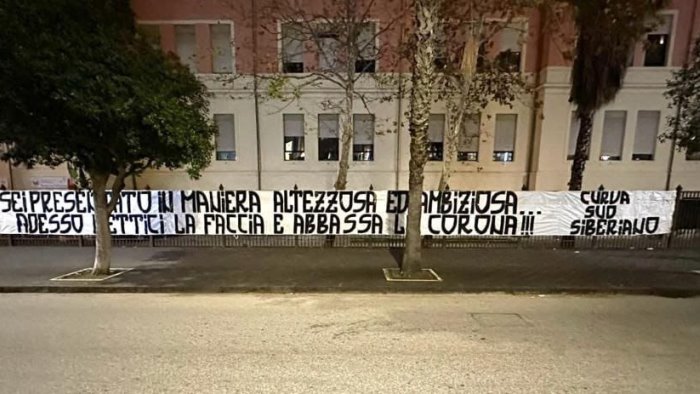 La Curva Sud Siberiano non sotterra l’ascia di guerra e rilancia la sua contestazione nei confronti del presidente Danilo Iervolino. Dopo aver urlato tutto il proprio malcontento, chiedendo al numero uno del club di “metterci la faccia”, lo zoccolo duro del tifo ha tappezzato la città con striscioni rivolti all’imprenditore di Palma Campania. “Mettici la faccia”, “Piccolo uomo” e “Ti sei presentato in maniera altezzosa e ambiziosa. Adesso mettici la faccia e abbassa la corona”, alcuni degli slogan comparsi in città è rivolti al presidente Danilo Iervolino.