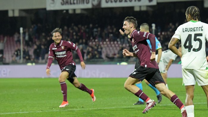 Salernitana-Sassuolo finisce 2-2. Maggiore riprende i neroverdi nel finale, evitando il settimo ko interno consecutivo. Nel primo tempo l'uno-due emiliano firmato Laurienté e Bajrami. Nella ripresa Candreva accorcia su rigore prima del 2-2 di Maggiore. Un pari che però non cancella la contesazione fortissima della tifoseria alla squadra.