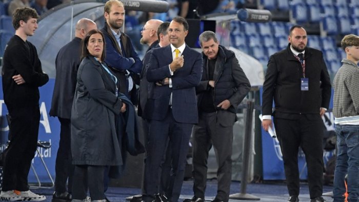 La speranza di vedere un’altra Salernitana, più arrembante ma soprattutto orgogliosa in Danilo Iervolino si spegne dopo appena sei minuti. Il gol di Felipe Anderson è il preludio all’ennesima serataccia per i colori granata. Due mesi dopo l’ultima volta, il presidente della Salernitana ritorna al seguito della squadra campana senza però fortuna. Aveva saltato anche l’impegno interno con il Sassuolo perché all’estero, ieri invece il numero uno granata ha voluto vedere con i suoi occhi una squadra senza più mordente e ormai rassegnata. Muso lungo, volto rabbuiato. Insieme alla moglie Chiara Giugliano e al figlio Antonluca, per Iervolino è stato tempo di incassare un’altra pesante delusione, con tanto di saluto ancora prima del fischio finale.