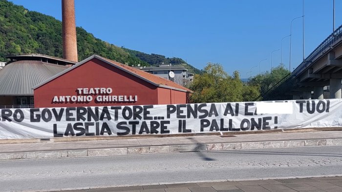 La retrocessione in serie B della Salernitana ha fatto finire tutti sul banco degli imputati. Per la città nessuno può essere esentato da colpe. E così, qualcuno, ha puntato il dito anche contro la politica locale. All'indomani della matematica retrocessione in serie B, è stato affisso nei pressi del Teatro Ghirelli uno striscione rivolto al governatore Vincenzo De Luca. Il messaggio, scritto con vernice nera su carta bianca, è stato rimosso dopo poco. In rete, tuttavia, circola una foto - inviata anche alla nostra redazione - che testimonia l'assenza di firme sullo striscione. Probabile che gli autori rientrino in quella fetta di tifoseria che ritiene il fallimento sportivo della Salernitana figlio anche degli screzi venutisi a creare tra la proprietà e la politica cittadina. Tesi che, tuttavia, non può giustificare il mortificante campionato disputato dai granata che, dopo la retrocessione, rischiano di centrare anche il record di squadra retrocessa con il minor numero di punti in un torneo a 20 squadre.