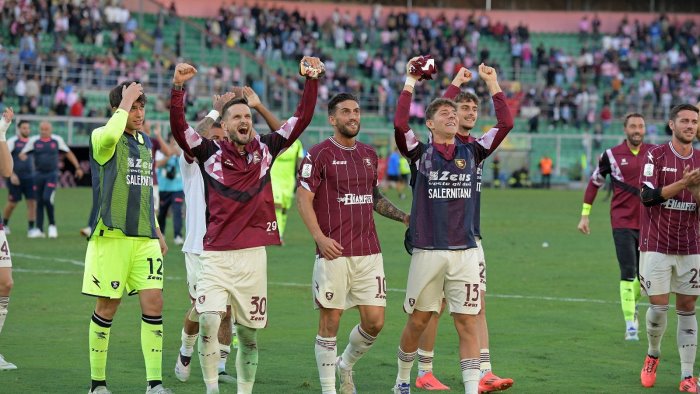 SALERNITANA (4-3-3): Sepe 6.5; Stojanovic 6.5 (39' st Ghiglione 5.5), Bronn 6.5, Ferrari 7, Njoh 6.5; Soriano 6 (15' st Hrustic 6), Amatucci 6.5, Tello 7; Verde 6 (15' st Kallon 5.5, 39' st Torregrossa 5.5), Simy 7.5, Braaf 6.5 (36' st Jaroszynski 6). A disposizione: Corriere, Fiorillo, Gentile, Ruggeri, Velthuis, Sfait, Wlodarczyk. Allenatore: Martusciello 7