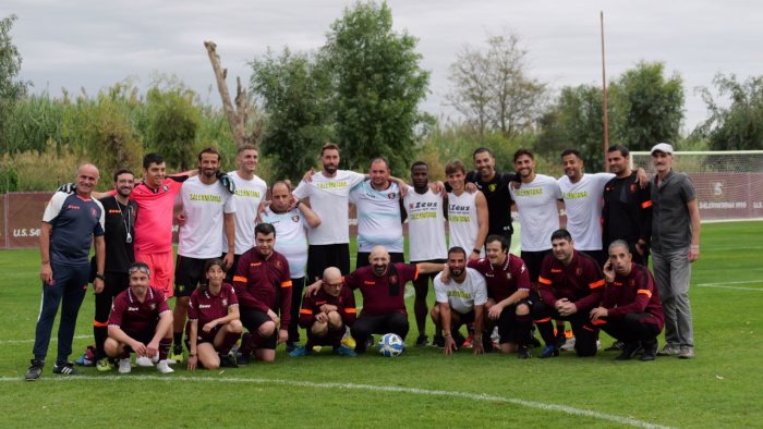 Un pomeriggio indimenticabile. Al termine della doppia seduta, per la Salernitana è stato tempo di fare i conti con una visita speciale. Nel chiuso del Centro Sportivo Mary Rosy hanno fatto capolino i calciatori della Salernitana For Special. Gli atleti con disabilità cognito-relazione sono stati allenati da Giovanni Martusciello e dal suo staff, scendendo in campo con diversi calciatori granata. Il progetto vede protagonista il club granata con la cooperativa “Il Villaggio di Esteban”, con la squadra che prenderà parte al campionato di calcio a 7 di competenza, organizzato dalla Divisione Calcio Paralimpico Sperimentale della Figc, comincerà il mese prossimo.