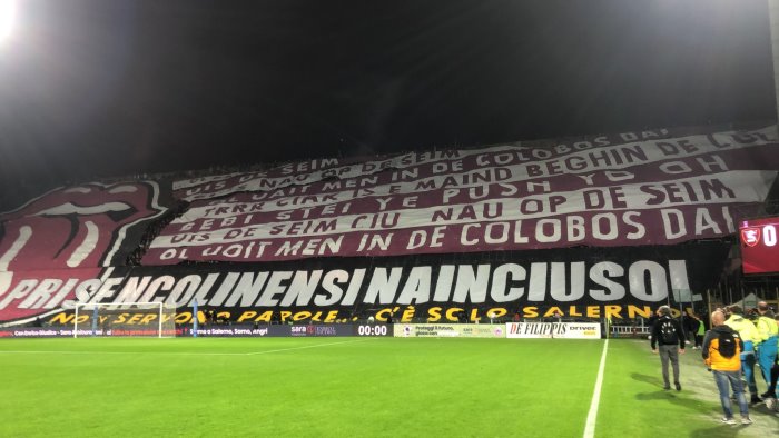 Il linguaggio universale per dichiarare il proprio amore per Salerno. Spettacolo doveva essere e così è stato. La Curva Sud Siberiano infiamma la vigilia di Salernitana-Casertana con l'ennesima scenografia da brividi. "Non servono parole, c'è solo Salerno", il messaggio che si apre sotto un mare di parole ispirate dalla canzone "Prisencolinensinainciusol" di Adriano Celentano. A seguire poi le note dei Rolling Stones con (I Can't Get No) Satisfaction per l'ennesima pagina di storia della Curva Sud Siberiano, una nuova cartolina del cuore pulsante che sceglie il suo vestito più bello per la serata da derby.