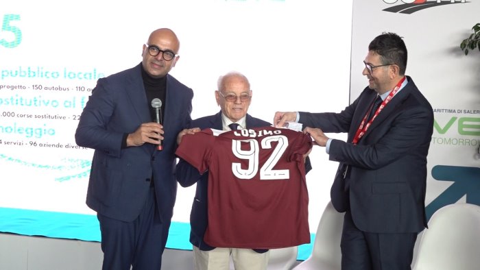 All’evento ha preso parte anche l’amministratore delegato Umberto Pagano: “Nel nostro caso, chi viaggia per lavoro con comodità riesce a dare il massimo. Grazie al lavoro svolto da Cosat riusciamo a raggiungere ogni angolo d’Italia senza alcun problema. La rete che si è creata ha il valore di rapporto familiare. Nel calcio anche grazie a questo si vince”. L’amministratore delegato Umberto Pagano ha poi sugellato con una stretta di mano e con il regalo di una maglia celebrativa al 92enne Cosimo Santomauro, storico supporter. “Ci siamo permessi di fare un regalo speciale a questo nostro tifoso speciale”, le parole dell’ad Pagano per poi scattare le foto di rito.