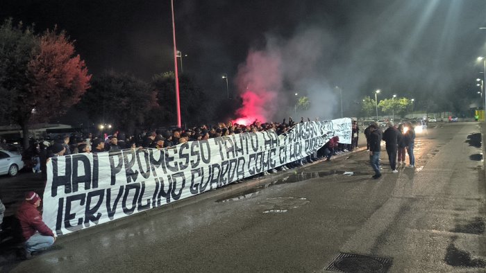 "Hai promesso tanto, hai promesso tutto. Iervolino, guarda come ci ha ridotto". La Curva Sud Siberiano canta fortissimo contro Danilo Iervolino e Daniele Faggiano. Nel mirino degli ultras della Salernitana ci sono il massimo dirigente e il direttore sportivo. La contestazione annunciata ieri notte prende forma nel prepartita di Salernitana-Casarano. Centinaia di tifosi si scagliano contro Iervolino: "Ci hai preso la serie A e hai calpestato la dignità. Via dalla mia città, ma quando vendi questa società". Poi un coro anche sulla contestazione delle scorse settimane: "Parli solo in Mondovisione e poi piangi per uno striscione. Guarda come ci ha ridotto, questa piazza merita ben altro". Infine anche fuori da Salerno. Per la prima volta nel mirino della tifoseria organizzata anche Daniele Faggiano, segnale di una crisi ambientale sempre più forte. Clima tutt'altro che ideale.