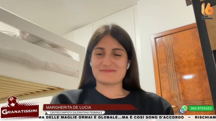 La gioia per il successo sul Matera e la voglia di continuare a sognare. La Salernitana Women punta in alto. A Granatissimi, in onda su Ottochannel, la centrocampista Margerita Di Lucia ha raccontato le emozioni di una stagione che al momento annovera le granatine al secondo posto in classifica: “Stiamo lottando in questa stagione, con il secondo posto che al momento ci garantirebbe la qualificazione ai playoff promozione”. Terzino di nascita ma diventata un centrocampista, Di Lucia è al suo secondo anno con la Salernitana: “Sentiamo la vicinanza della società e la voglia di puntare in questo progetto. Abbiamo una fetta di tifo che si fa sentire e anche in strada percepiamo la passione e la curiosità di questa piazza verso la nostra realtà”.