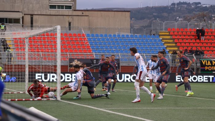 POTENZA (4-3-3): Cucchietti 6; Kirwan 6.5 (28' st Adjapong 5.5), Riggio 6, Camigliano 6, Rocchetti 6.5 (21' st Balzano 6); Siatounis 6.5, Felippe 6.5 (21' st Ghisolfi 6), Castorani 6.5; Schimmenti 6.5 (1' st Petrungaro 6), Murano 6.5 (36' st Selleri 6.5), D’Auria 6.5. A disposizione: Franchi, Guiotto, Bura, De Marco, Erradi, Maisto, Delle Monache, Mazzeo. Allenatore: De Giorgio 6
