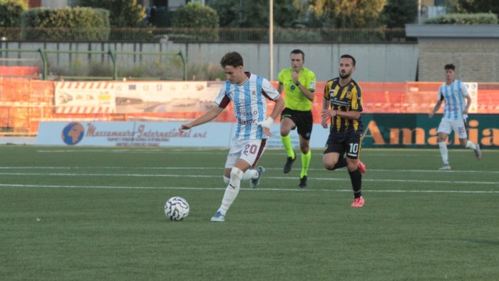In avvio i granata costruiscono tanto ed è bravo il portiere costiero in più di un’occasione soprattutto su Ferrari. Al 24’ la Salernitana apre le marcature con Ferrari che sfrutta il cross basso di Quirini. La Salernitana continua a macinare occasioni e Palumbo si distingue in più occasioni con interventi decisivi. Al 31’ conclusione di potenza di Lescano che sbatte sul palo. Al 34’ raddoppio Salernitana: Ferraris riceve palla al limite dell’area, salta un avversario e lascia partire una gran conclusione che si infila sotto la traversa. Al 40’ tris granata con Lescano con un diagonale preciso. Al 44’ poker Salernitana: cross di de Boer e colpo di testa vincente di Quirini. Il primo tempo si chiude sul risultato di 4-0.